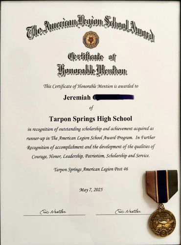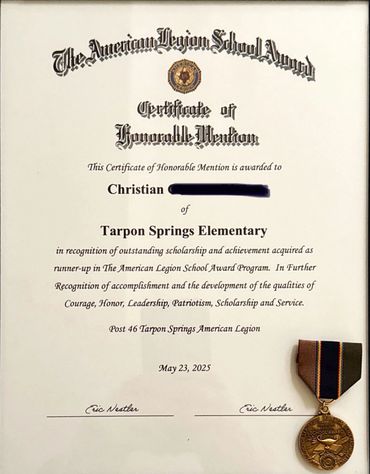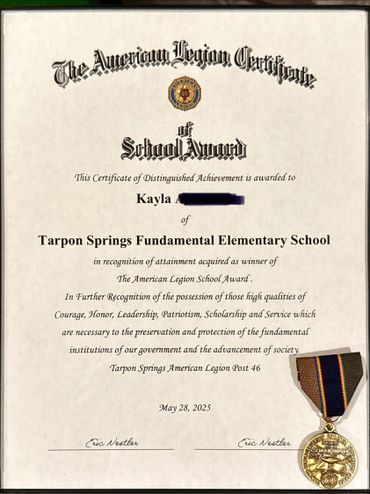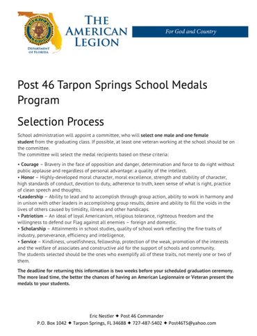 To participate in this program or to nominate a candidate, please contact Post 46 Tarpon springs at 727-487-5402