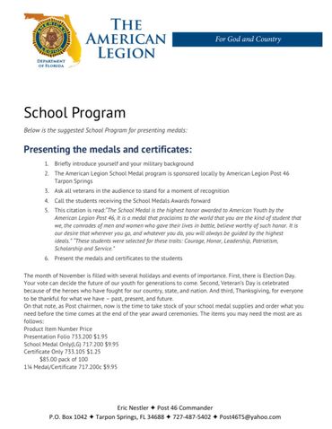 The deadline for returning this information is two weeks before your scheduled graduation ceremony. The more lead time, the better the chances of having an American Legionnaire or Veteran present the medals to your students.